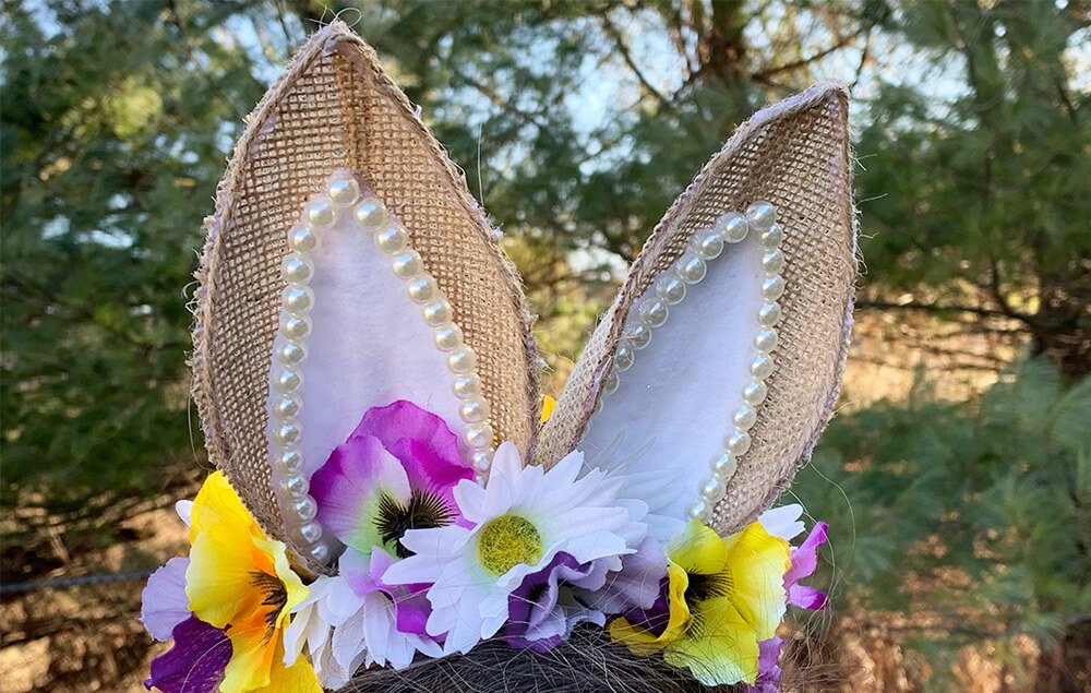 Cut flowers off stems and hot glue to the headband around the ears.
