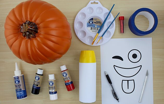 Cover the pumpkin stem with painter's tape, then spray paint the entire pumpkin. Let dry.