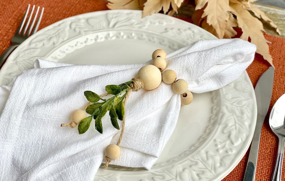 These DIY wood bead napkin rings are easy to make using just a few supplies! Create a timeless look for your tablescape with rustic wooden beads and jute twine.