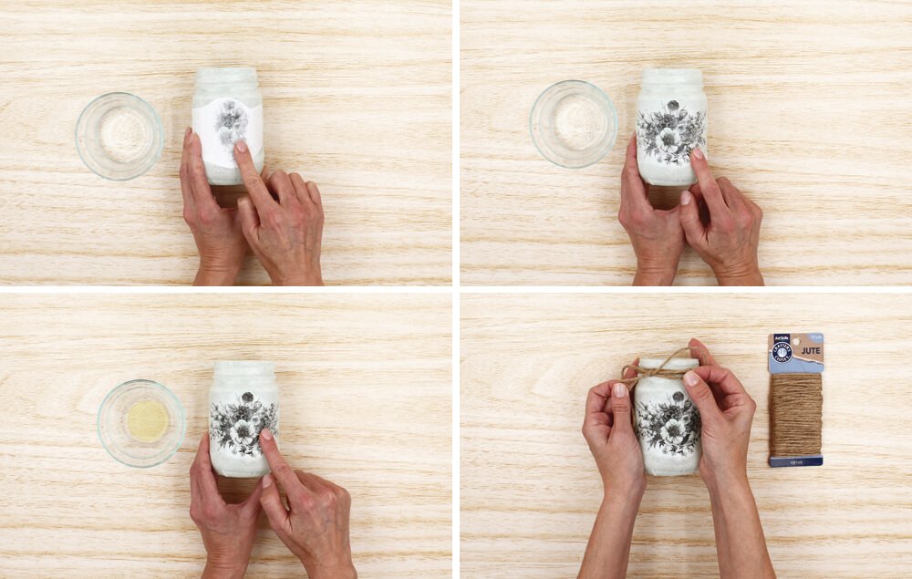 Tie a 32" piece of jute around the rim of the mason jar.