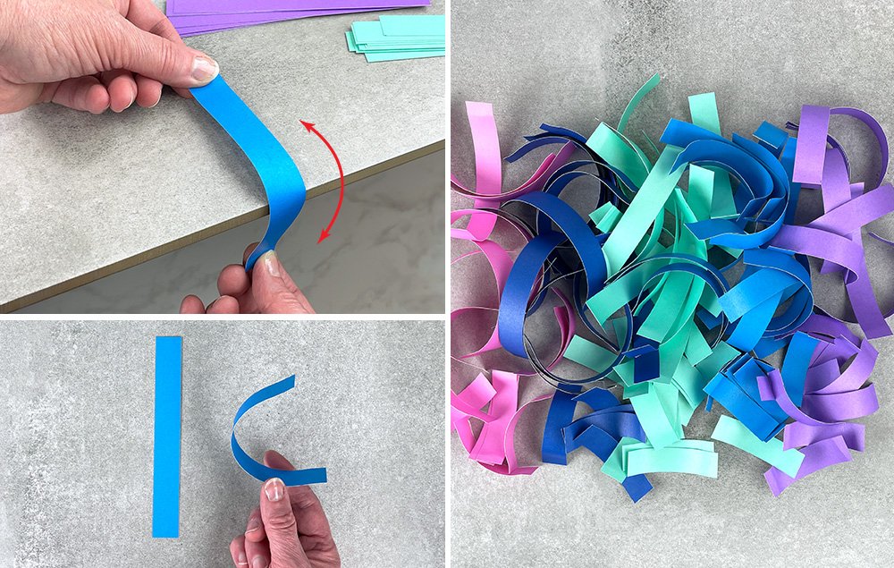 A) Use the edge of a table to pull each strip of paper back and forth.