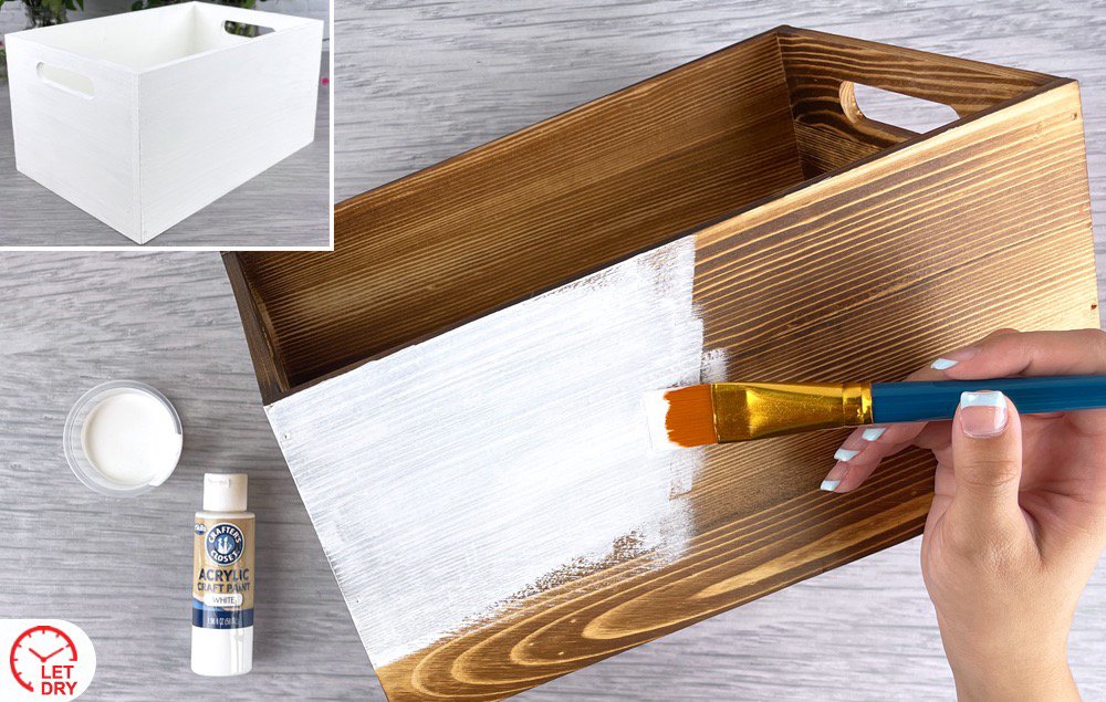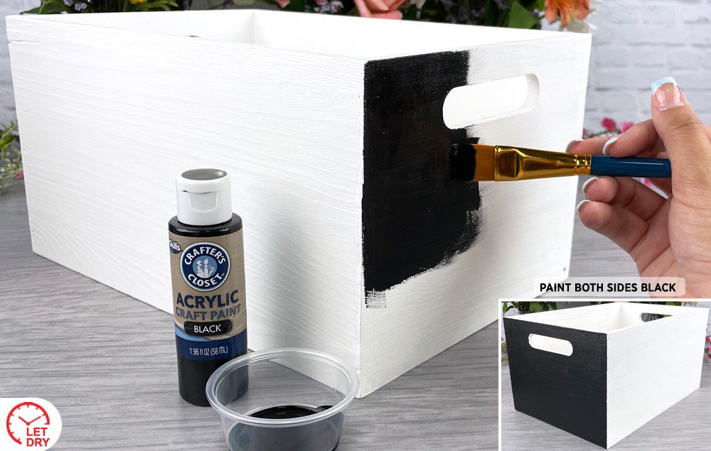 D)   Create your pattern on both sides of the box and let the paint dry completely.