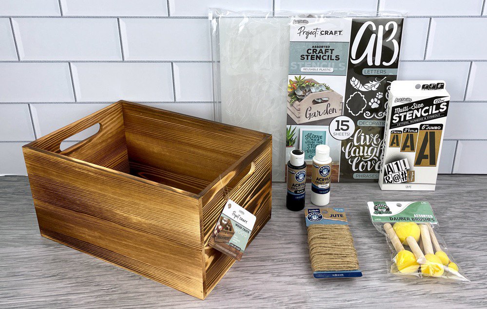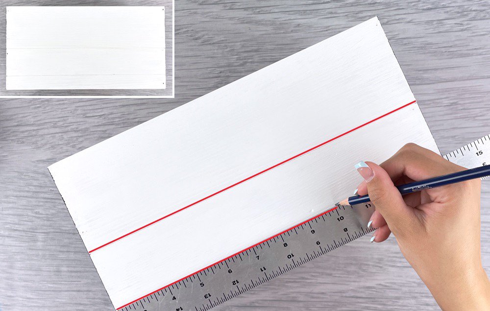 A)    Draw very light pencil lines on the wood box to act as guides for placement of the stencils.