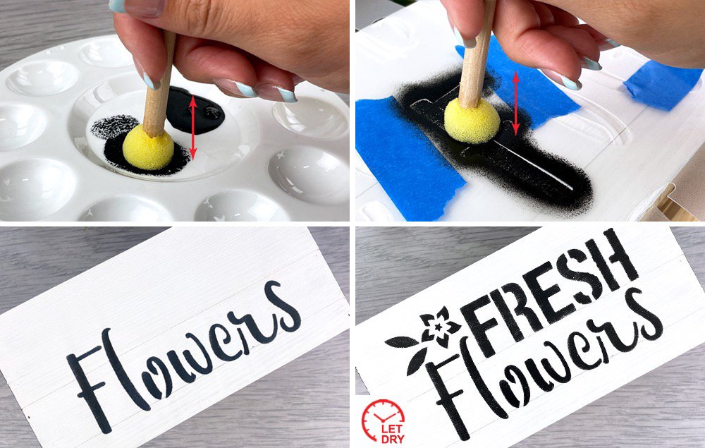 B)    Use an up and down stamping motion to apply the black paint to the stencil. Tip: Allow the paint to dry in between each stencil application so that you don’t accidentally transfer the paint.