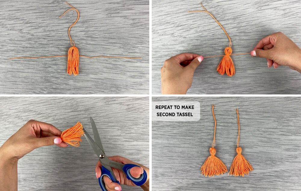 D) Repeat the process to make a second tassel for the other end of the garland.
