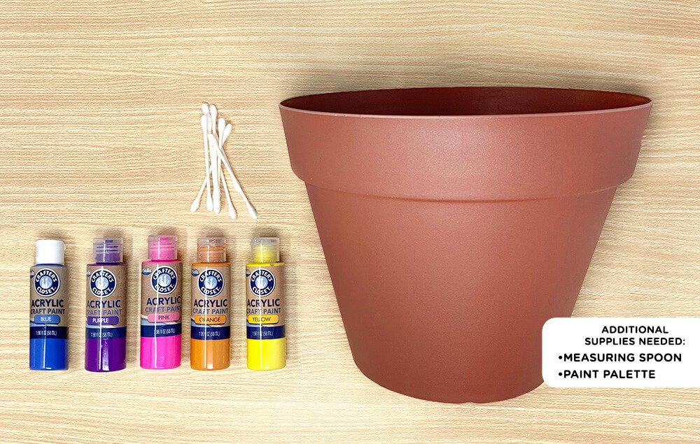 These colorful planters will make your flowers envious. Liven up a plain planter with bright funky colors. Easy to make and fun for all ages.